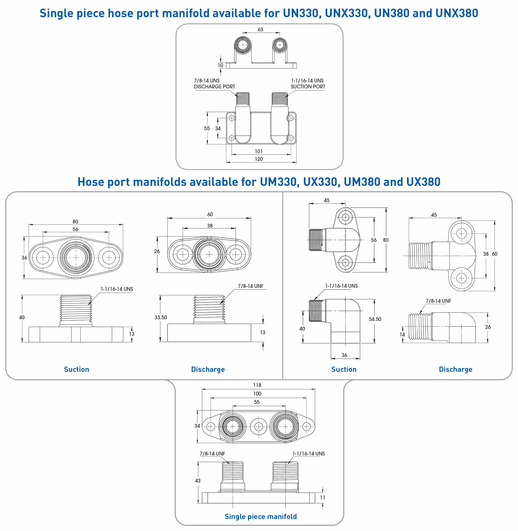 Consistent M12 x 1.0 mm access port size. Easy interchange of blanking plugs, service valves, oil return and pressure switch fittings.